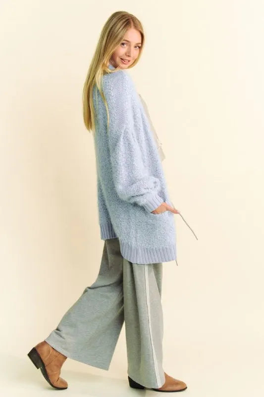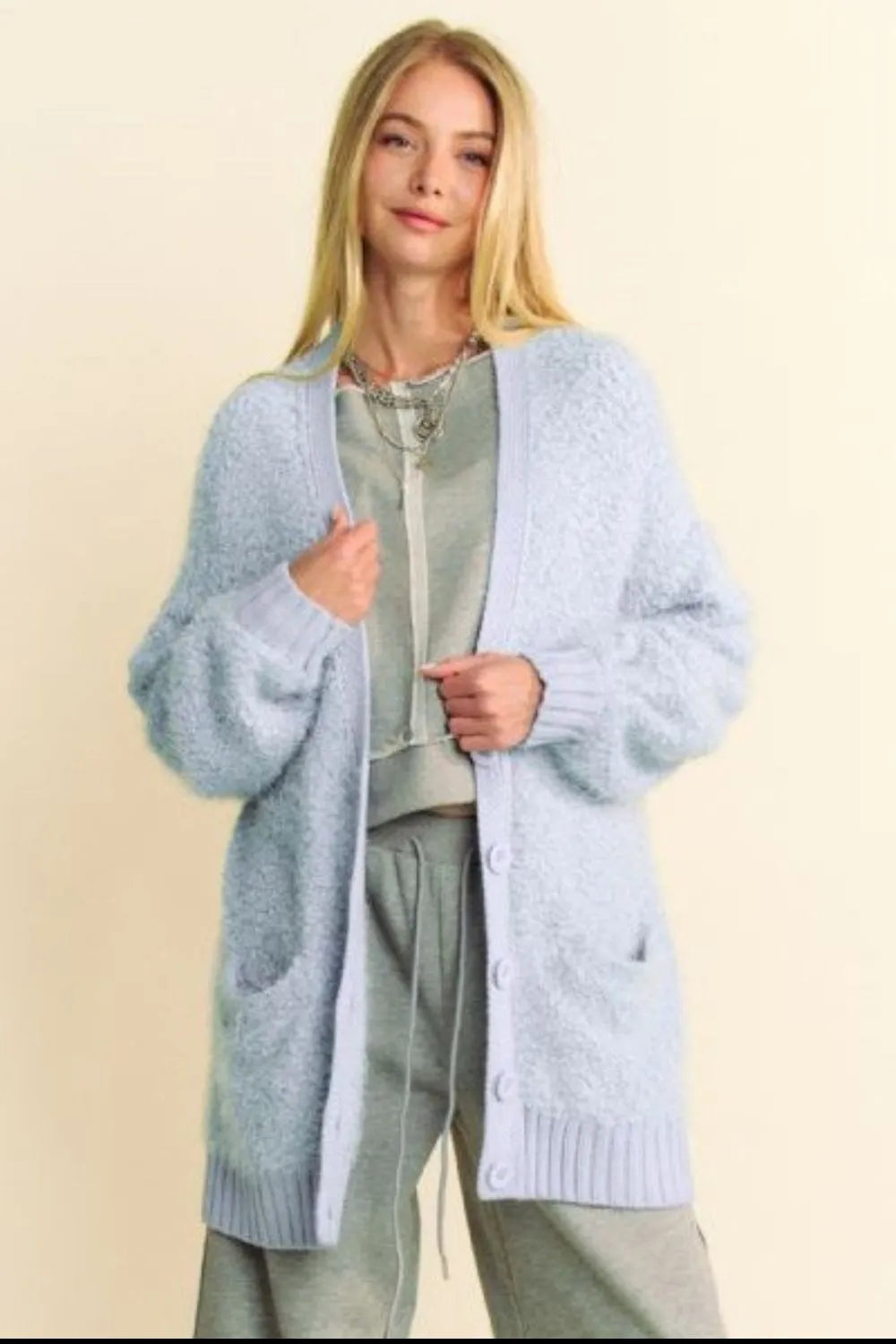 Davi & Dani Ribbed Hem Button Up Long Sleeve Cardigan