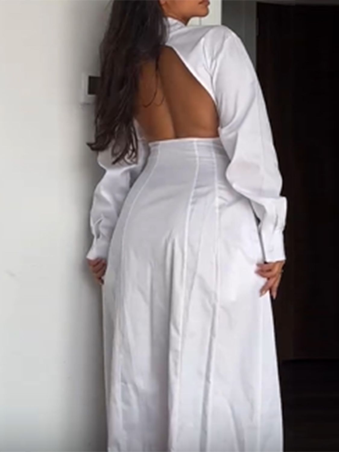 • Devine Backless Long Sleeve Midi Shirt Dress