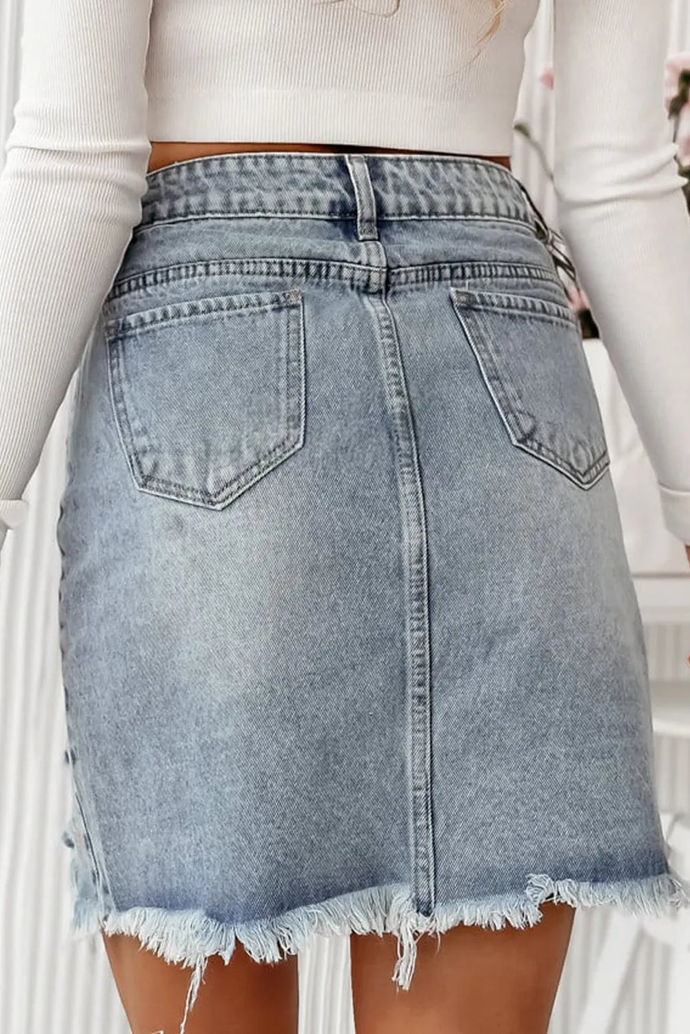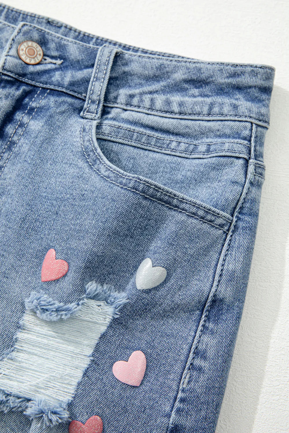 • Distressed Raw Hem Heart Mini Denim Skirt