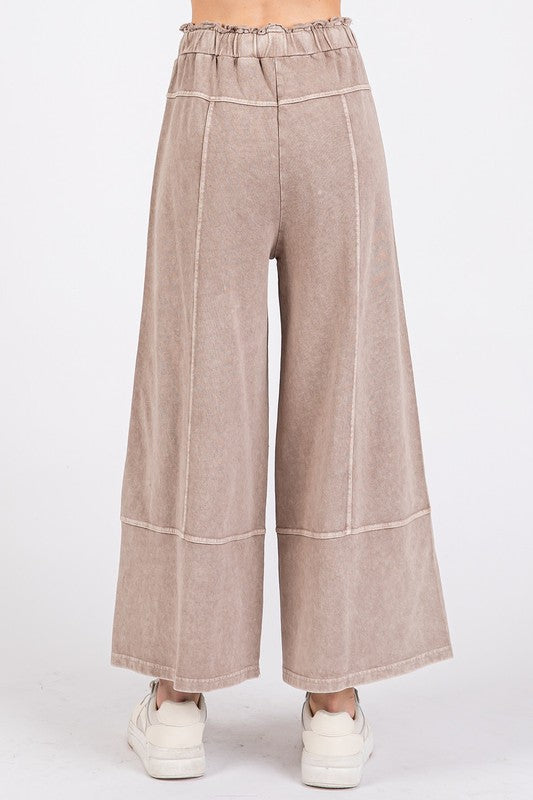 The Mineral Wash Seam French Terry Wide Leg Pants are a casual and comfortable option for everyday wear. The mineral wash treatment gives them a unique and vintage look. Featuring seam detailing, these pants have a subtle and stylish touch. Made from French terry fabric, they are soft and cozy. With a wide leg silhouette, they offer a relaxed and laid-back vibe perfect for lounging or running errands.