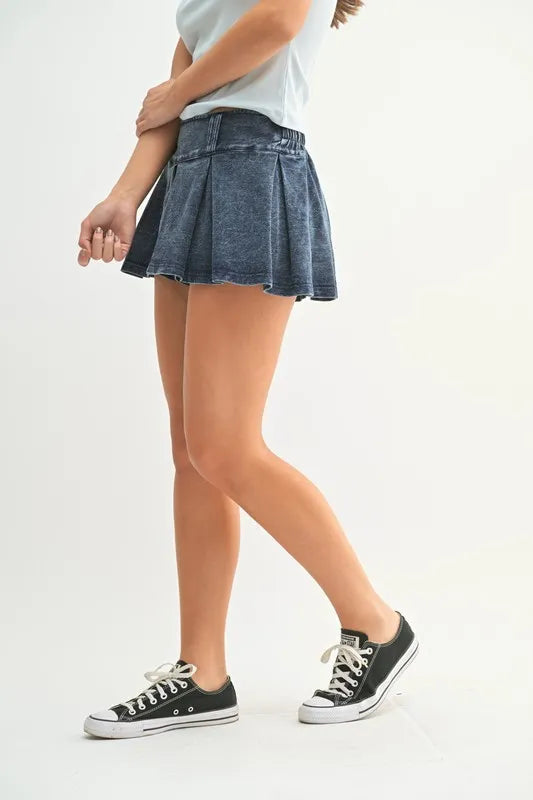 MONO B Mineral Wash Pleated Mini Skort