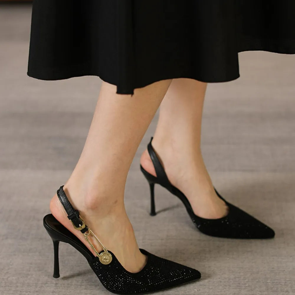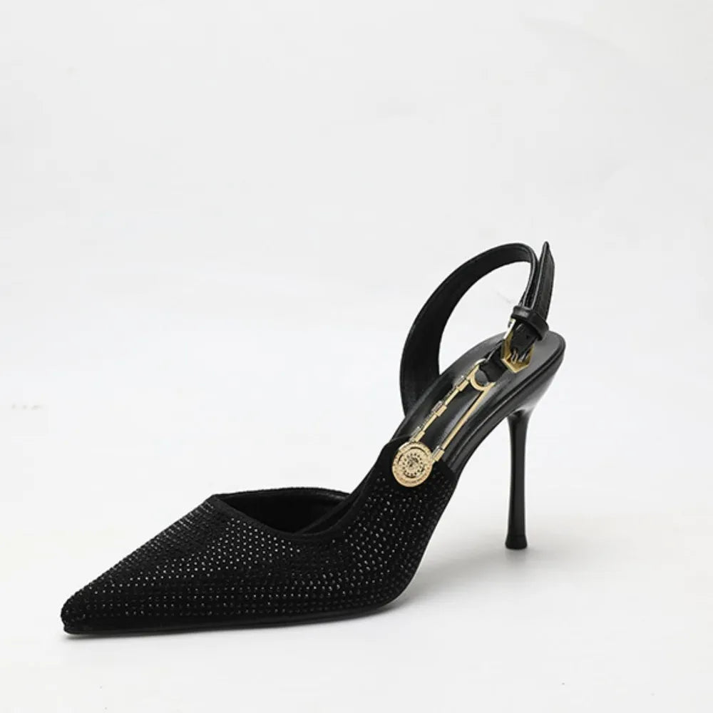 Rhinestone Point Toe Stiletto Slingback Pumps