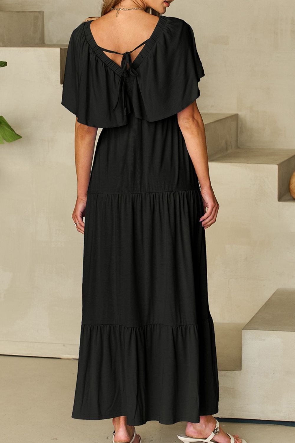 • Ruffled V Neck Flutter Sleeve Maxi Dress