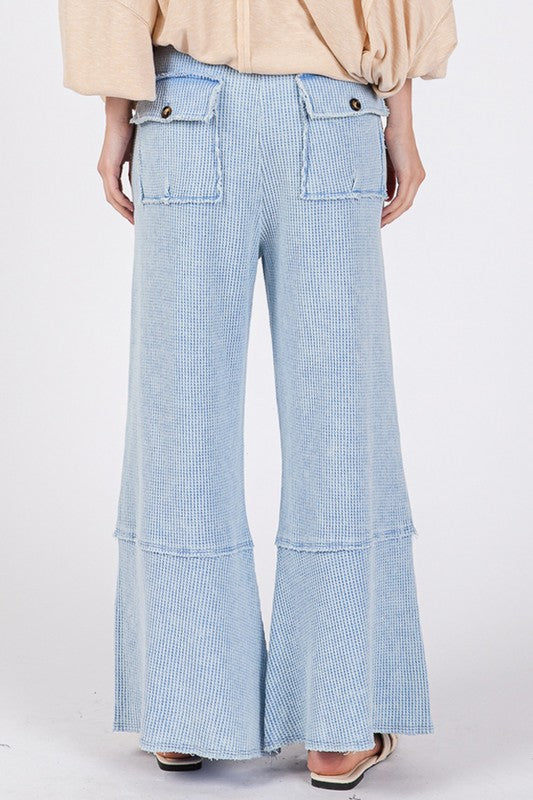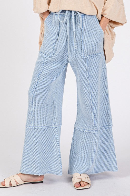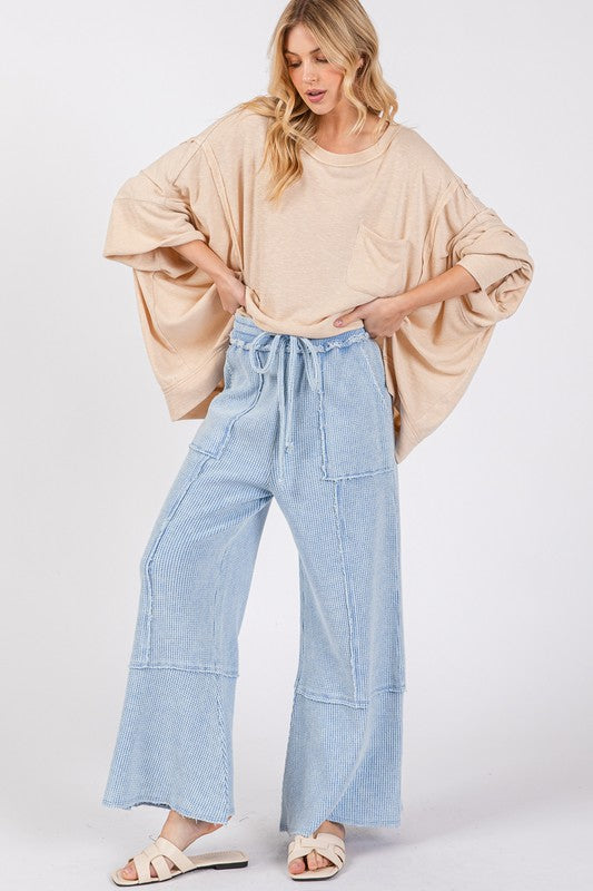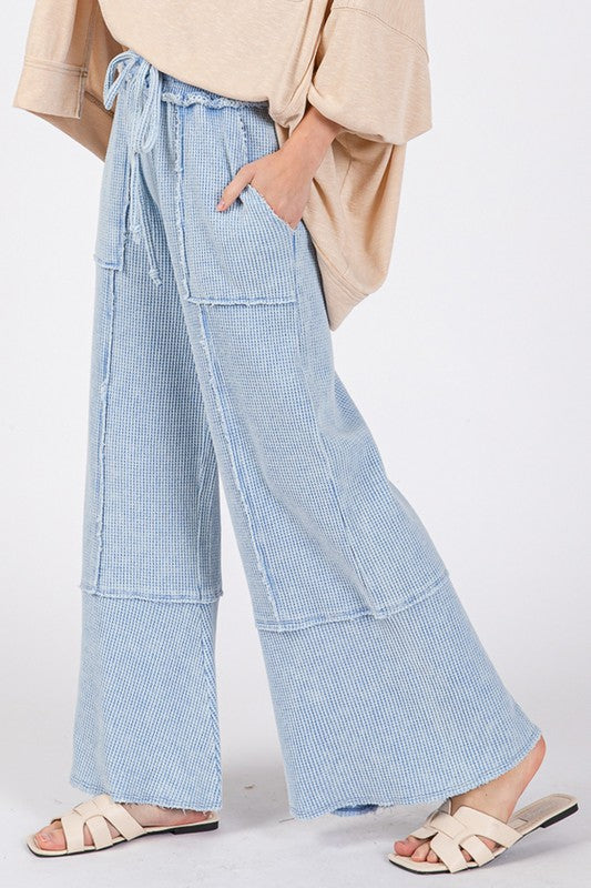 SAGE + FIG Waffle Textured Wide Leg Mineral Washed Pants