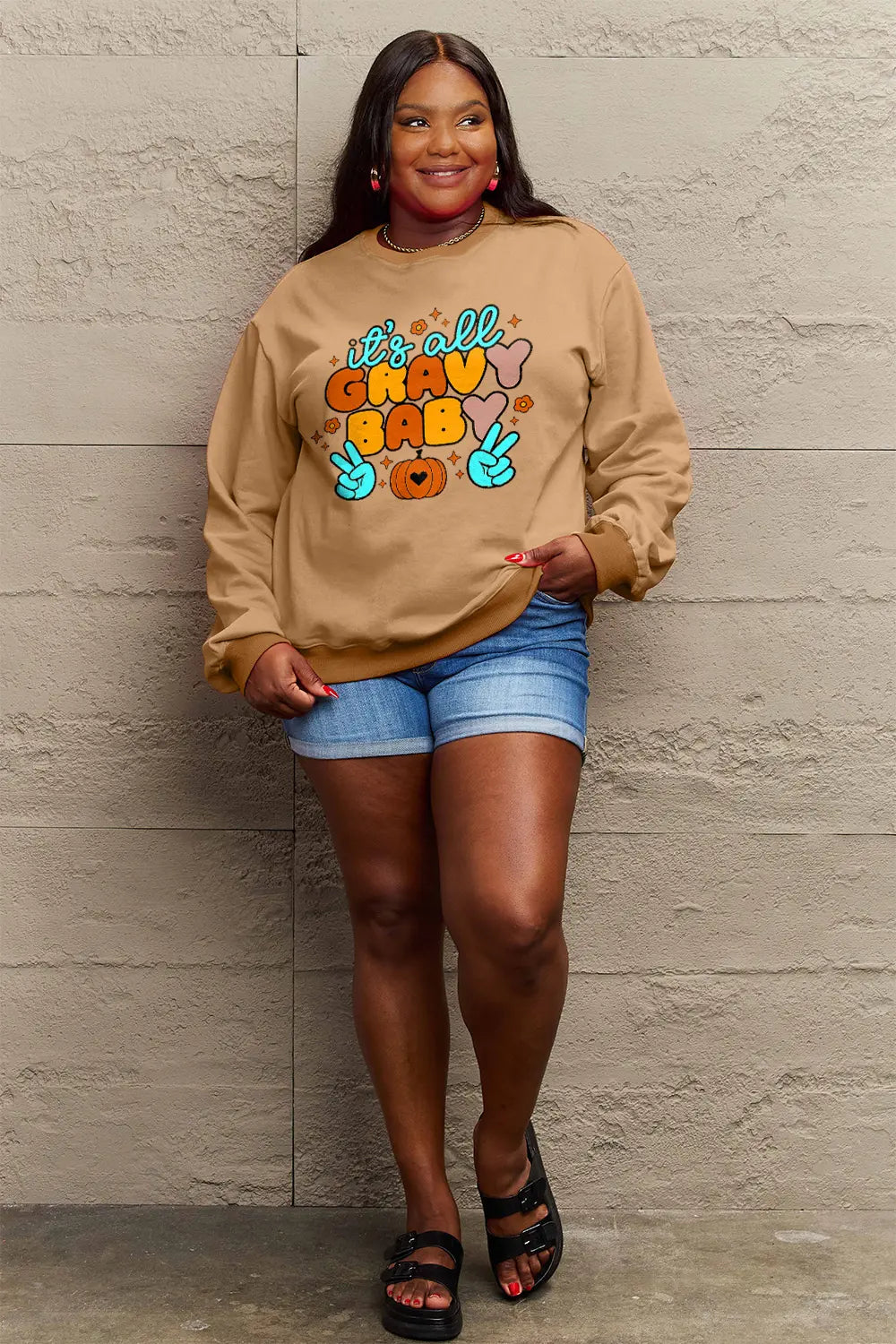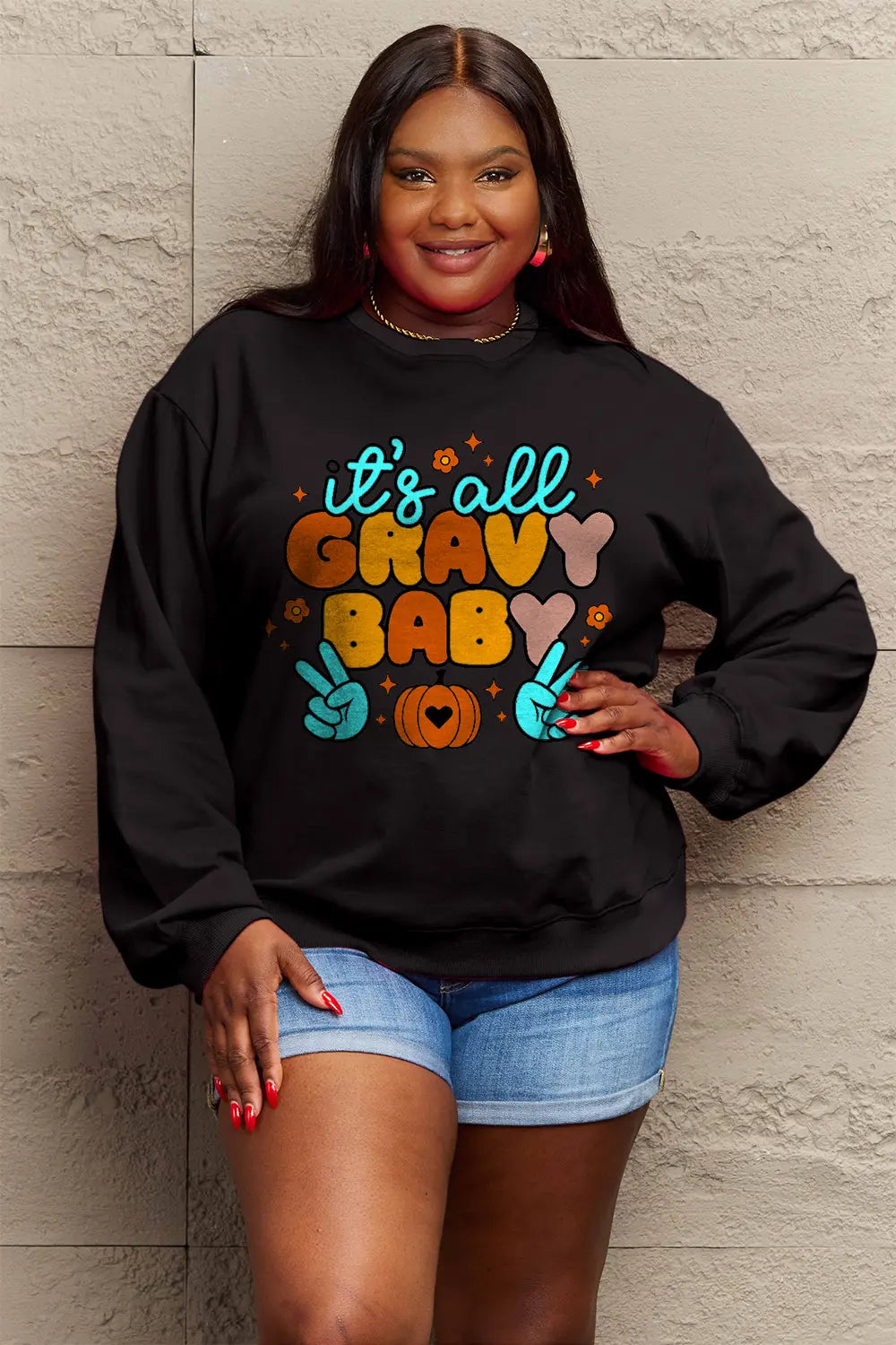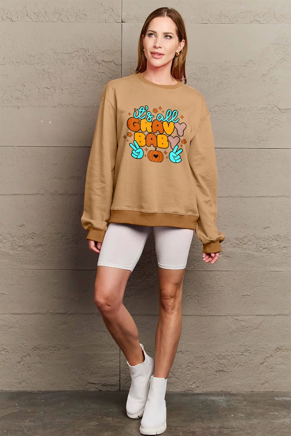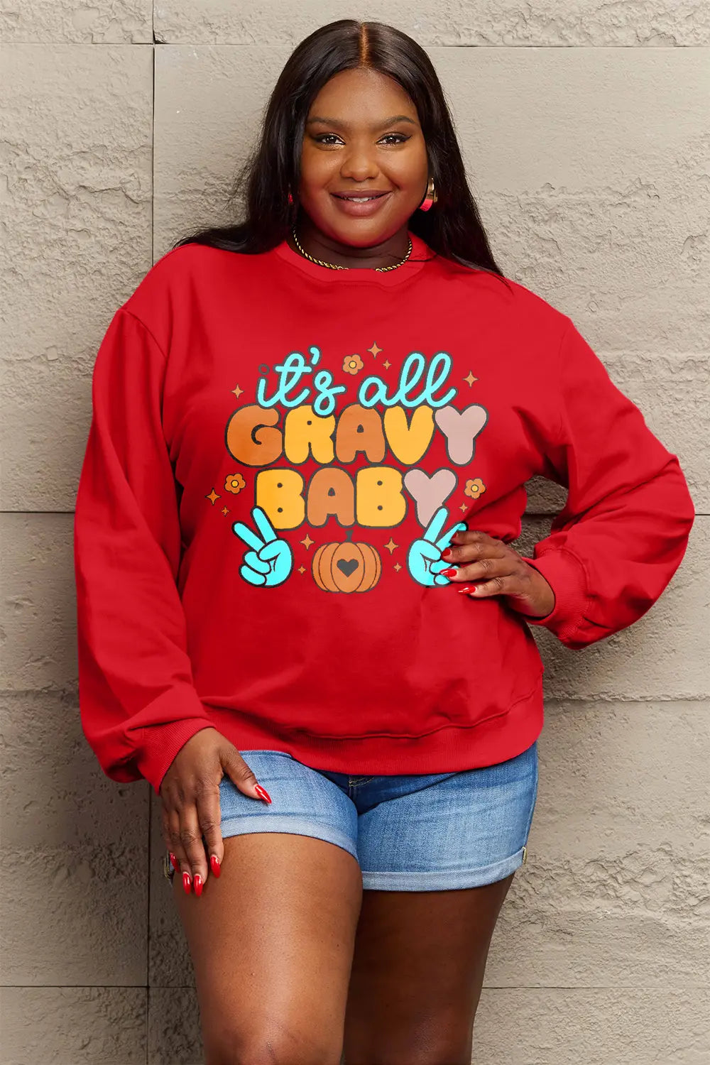 Simply Love Full Size IT'S ALL GRAVY BABY Long Sleeve Sweatshirt