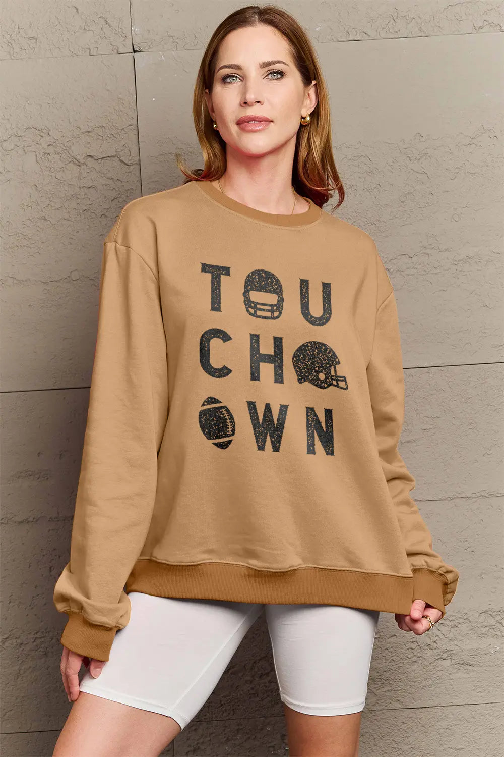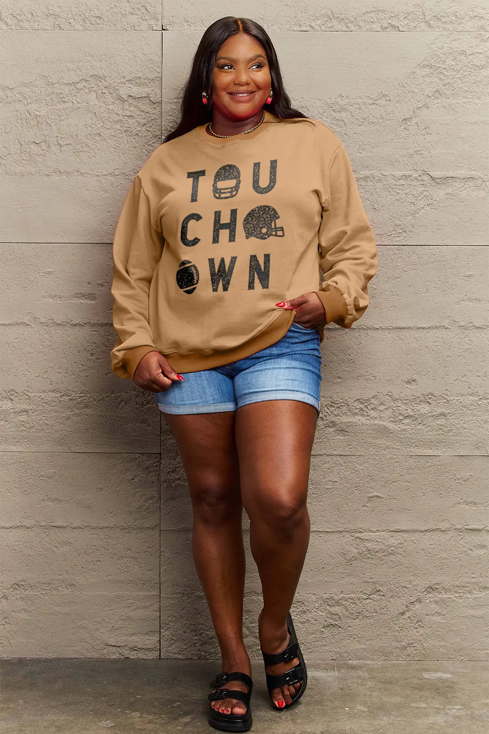 Simply Love Full Size TOUCHDOWN Long Sleeve Sweatshirt