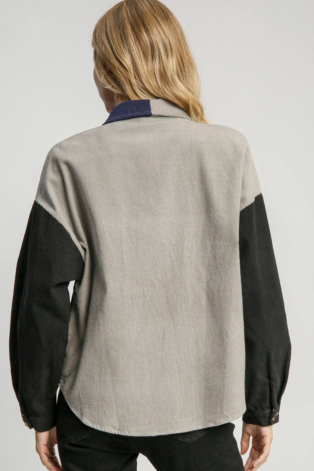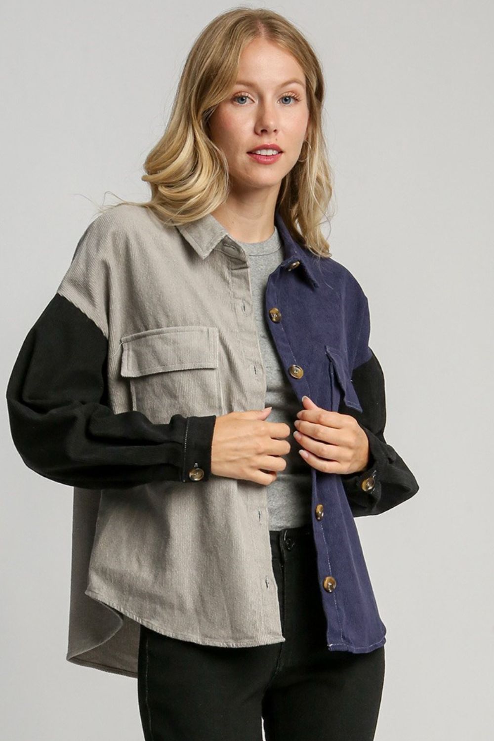 Umgee Full Size Color Block Button Down Jacket Plus Size